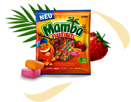In der Mamba Fruitparty treffen sich die fünf beliebten und lecker fruchtigen Mamba Geschmacksrichtungen Erdbeere, Orange, Zitrone, Himbeere und Kirsch.